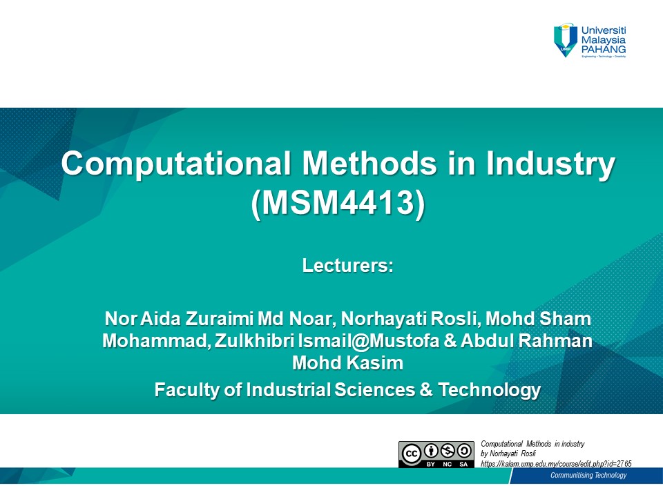 MSM4413 COMPUTATIONAL METHODS IN INDUSTRY
